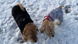 昨晩雪が降って、ほんの少しだけ積もりました。すぐに溶けてしまうレベルです。ワンコ達はいつもと変わらずですね。