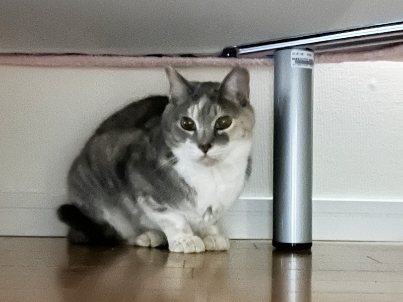 家に帰ってきたエピはいつもの場所には戻らずベッドの下に隠れてしまいました。う~む💦