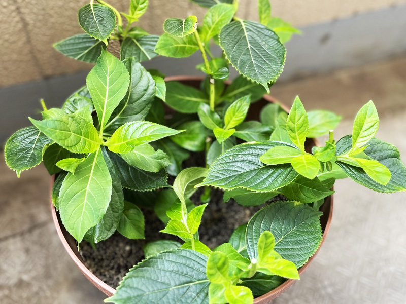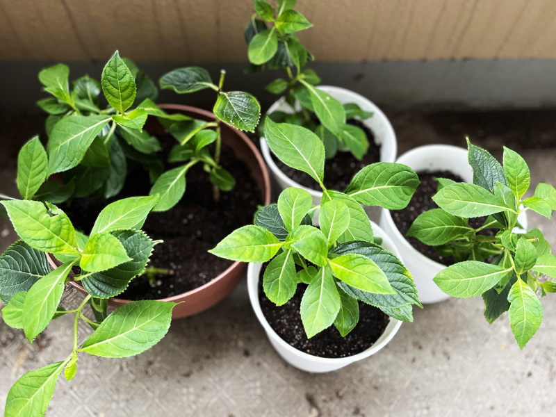 挿し木をしてから4ヶ月たった紫陽花たちは元気に育っていて込み合ってきました。