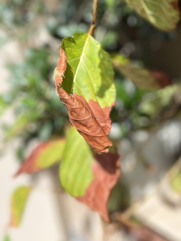 挿し木してから3年ほどたった桜は、春には40cm程でしたが夏の初めには3倍くらいに大きく成長していました。でもその後の暑さにやられて葉の一部が枯れてしまい、全体が枯れてしまわないかと冷や冷やしながら見守る日々でした。