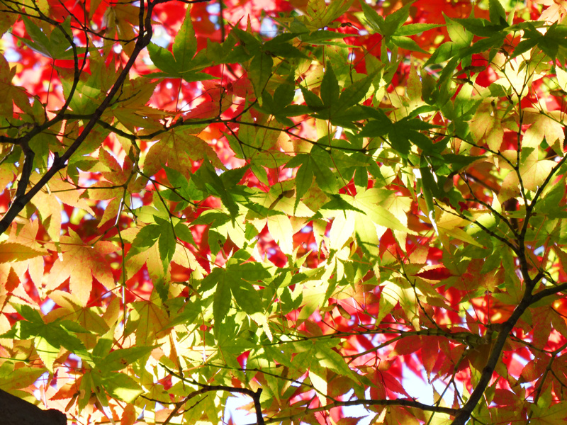 どこを切り取っても美しい紅葉。すっかり紅や黄に染まった様も、色とりどり混ざった様も、染まる途中の様もすべてに心癒されます。