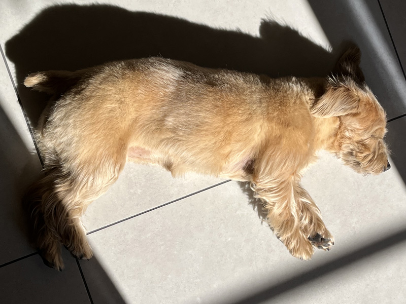 お昼寝 犬 2026.02.22 今日2月22日は猫の日ですね。ウチの猫はぬくぬくの部屋でハウスに何枚か入れられたクッションの中でのんびりお昼寝中です。 そして犬はと言うと、ぬくぬくの陽だまりでやっぱりのんびりお昼寝中です。